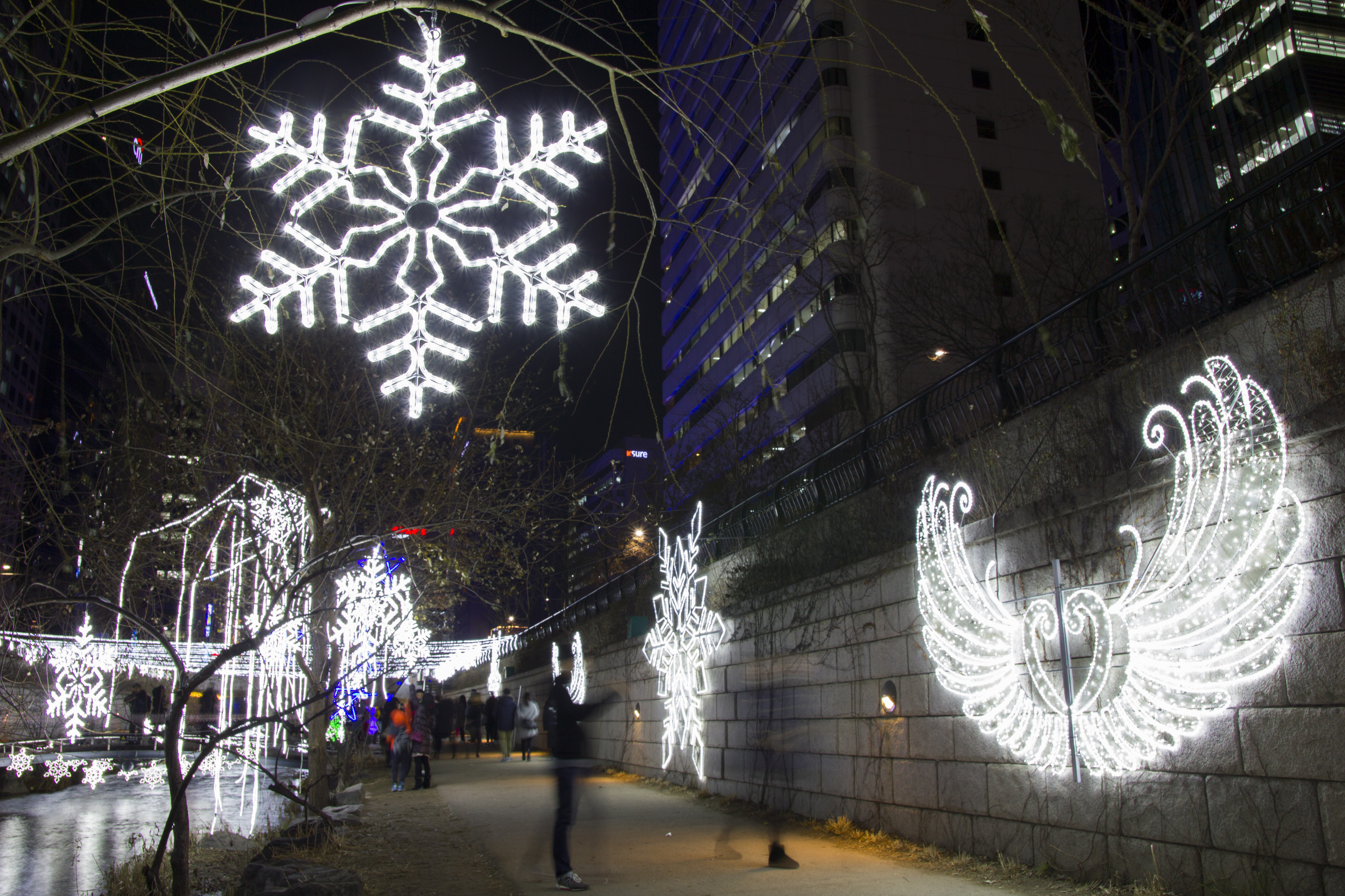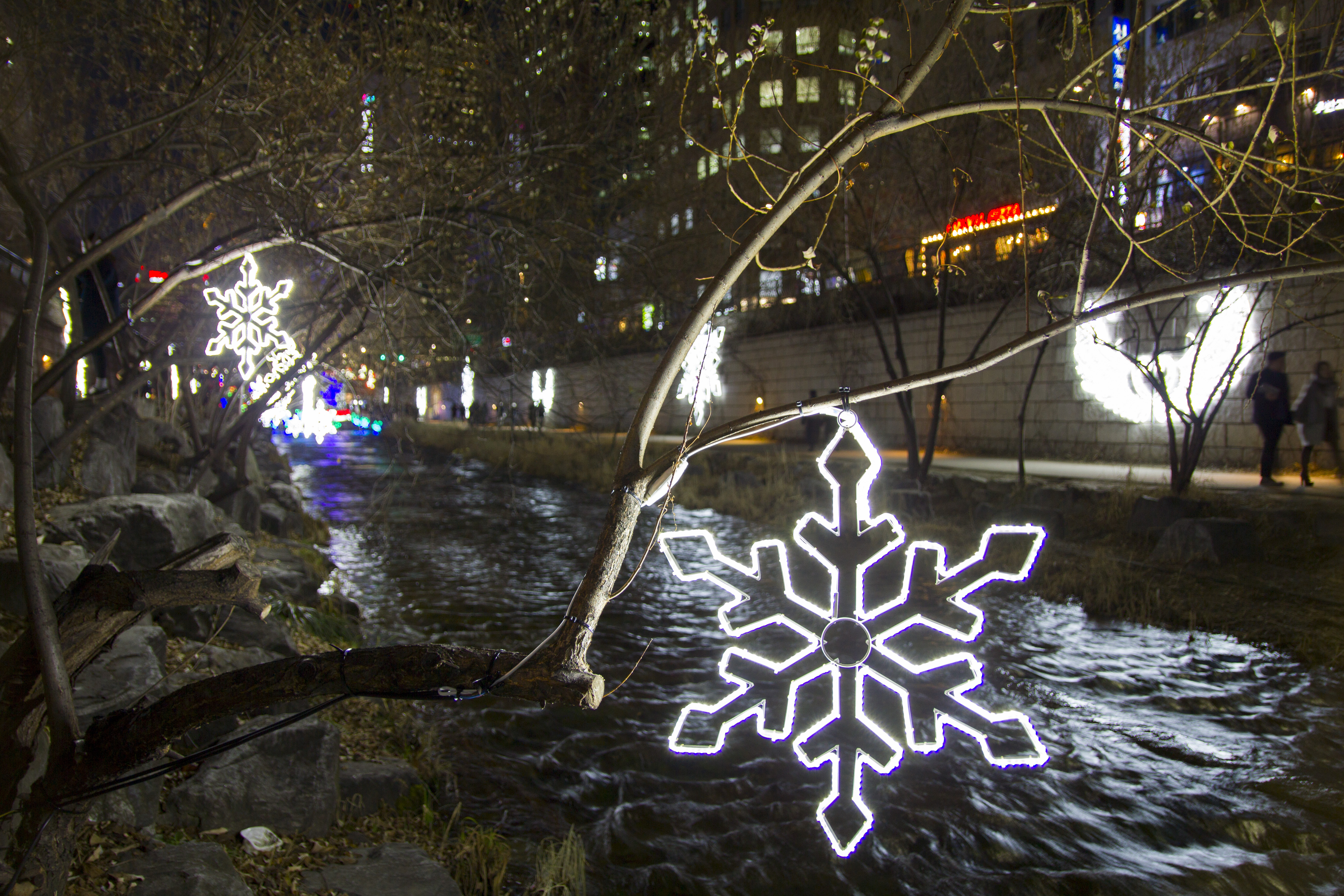 청계천은 복개공사 이후로 많은 사람들이 찾는 공간이 되었는데요, 특히 겨울에는 시청에서 스케이트를 타고 시청과 청계천 일대에서 진행되는 불빛축제를 보면서 데이트를 하러 많은 커플들이 방문하는 곳이에요.