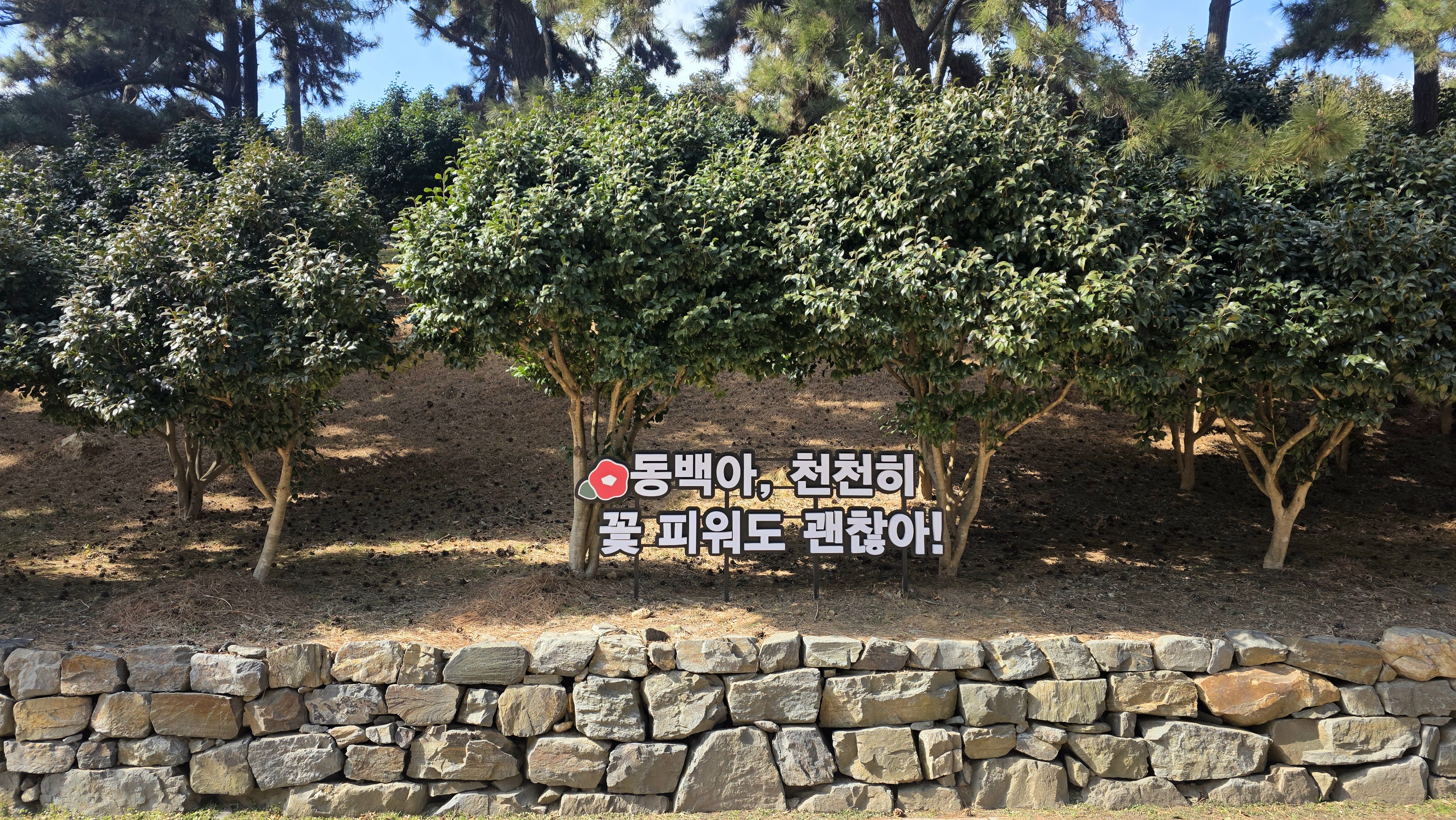 동백나무숲은 작은 동산 크기라 감상하지 않고 걷기만 하면 금세 관람이 끝날정도로 작은 편이에요. 동산 높이도 낮아서 걷기도 전혀 힘들지 않습니다.