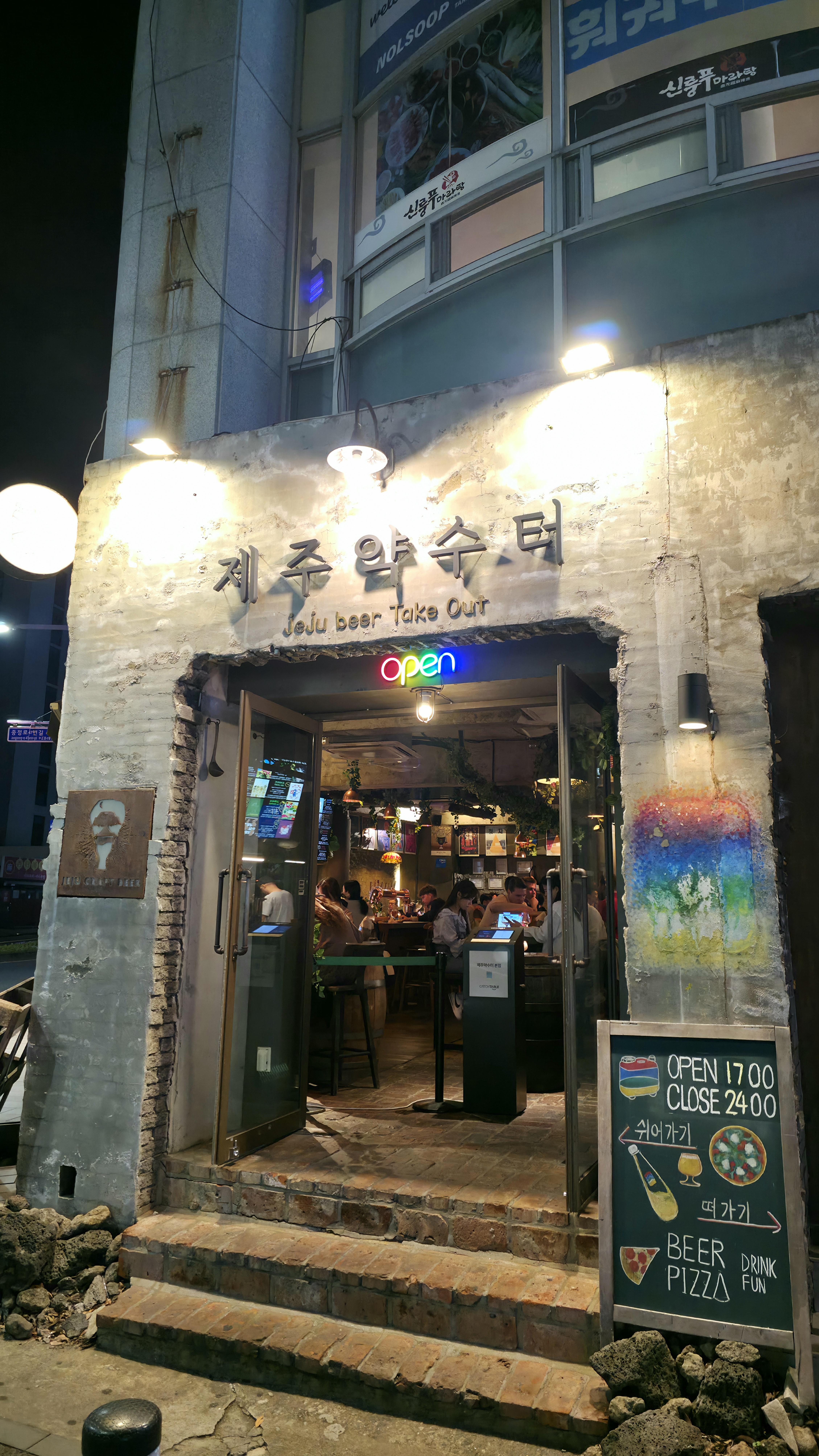 맛있는 저녁을 먹었으니 한잔 해야겠죠? 근처 약수터라는 수제맥주집으로 향합니다. 서귀포 매일 올레시장 근처에 있어서 슬슬 걸어가기로 해요.