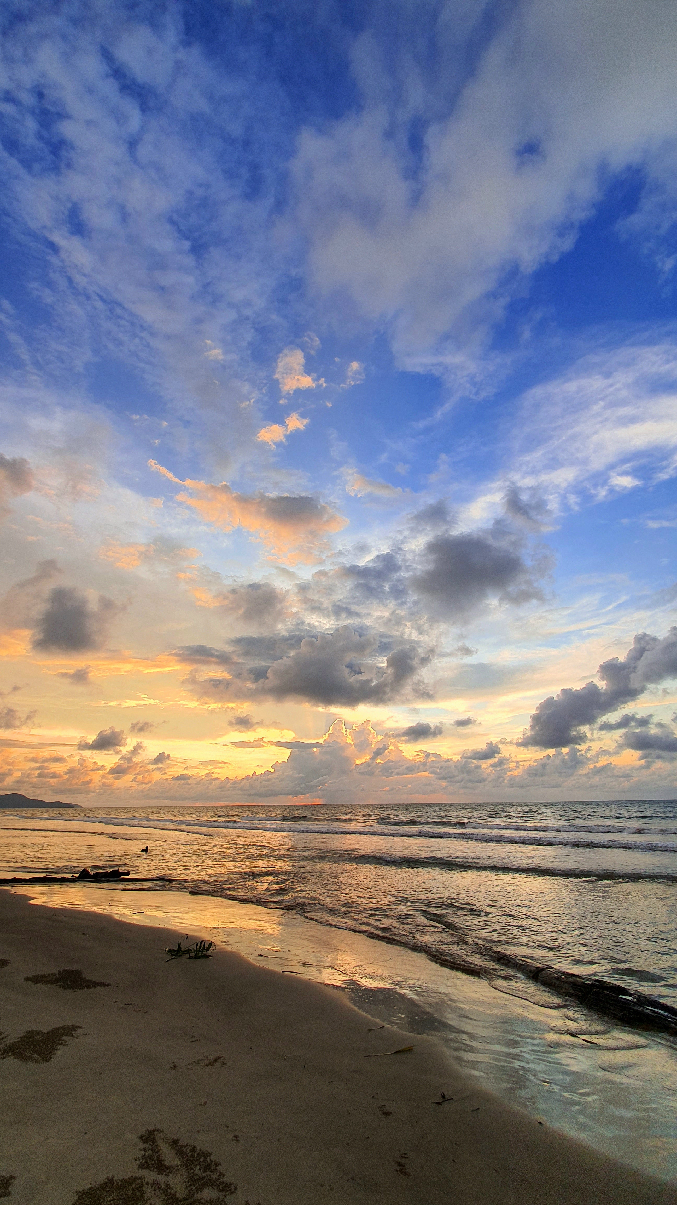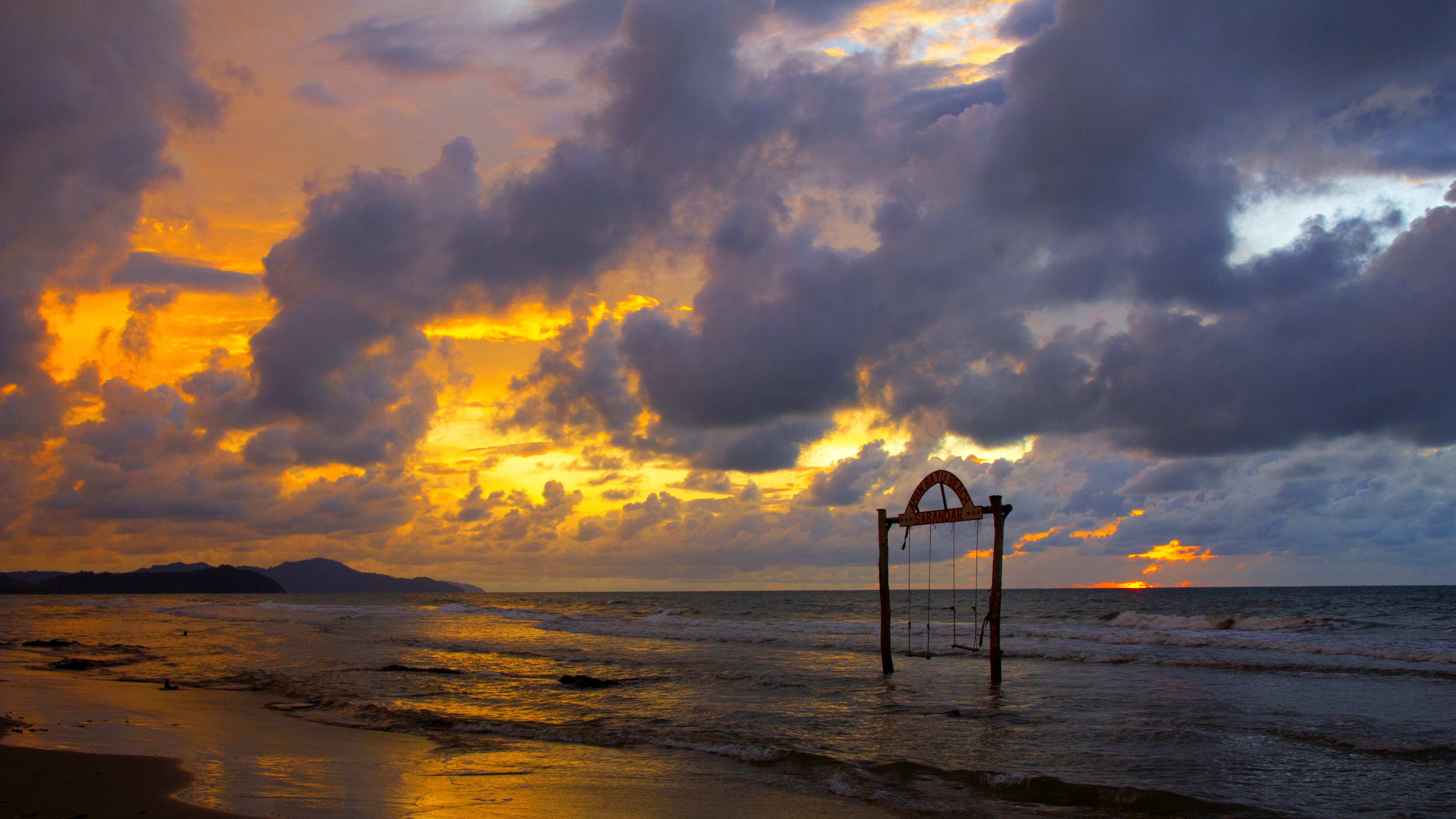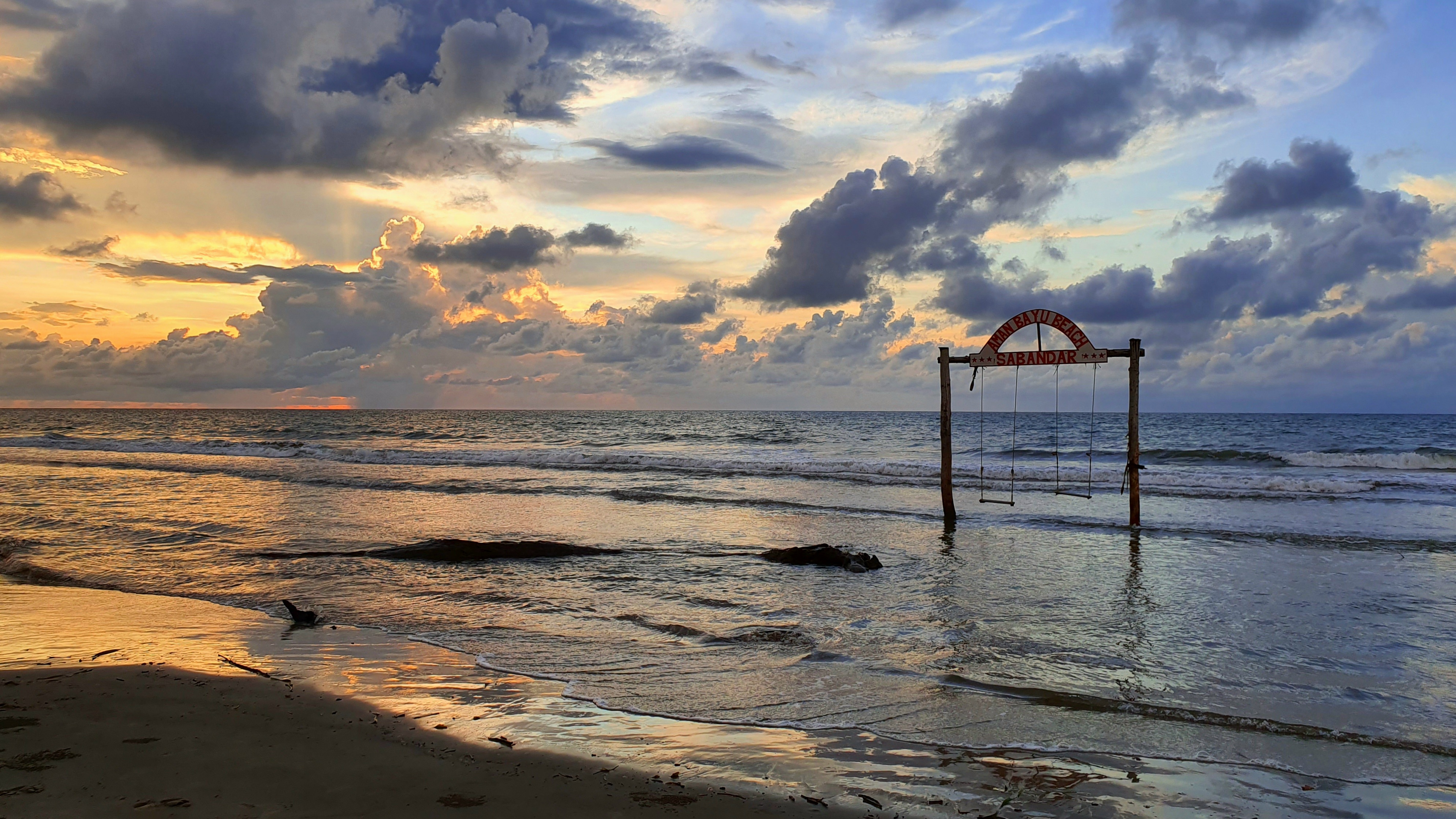 코타키나발루는 세계 3대 석양지라고 불리는데 위에 얘기했듯이 저흰 제대로 된 노을은 보지 못했어요. 사진처럼 애매한 느낌의 석양으로 만족해야 했습니다. 아쉽게도 날씨 운이 안 따라주네요. 그래도 여기 포토존인 Aman Bayu Beach 그네 앞에서 사진을 찍고, 해변도 걷고, 앉아서 바닷바람도 느껴보고, 할 건 다 해서 만족해요.