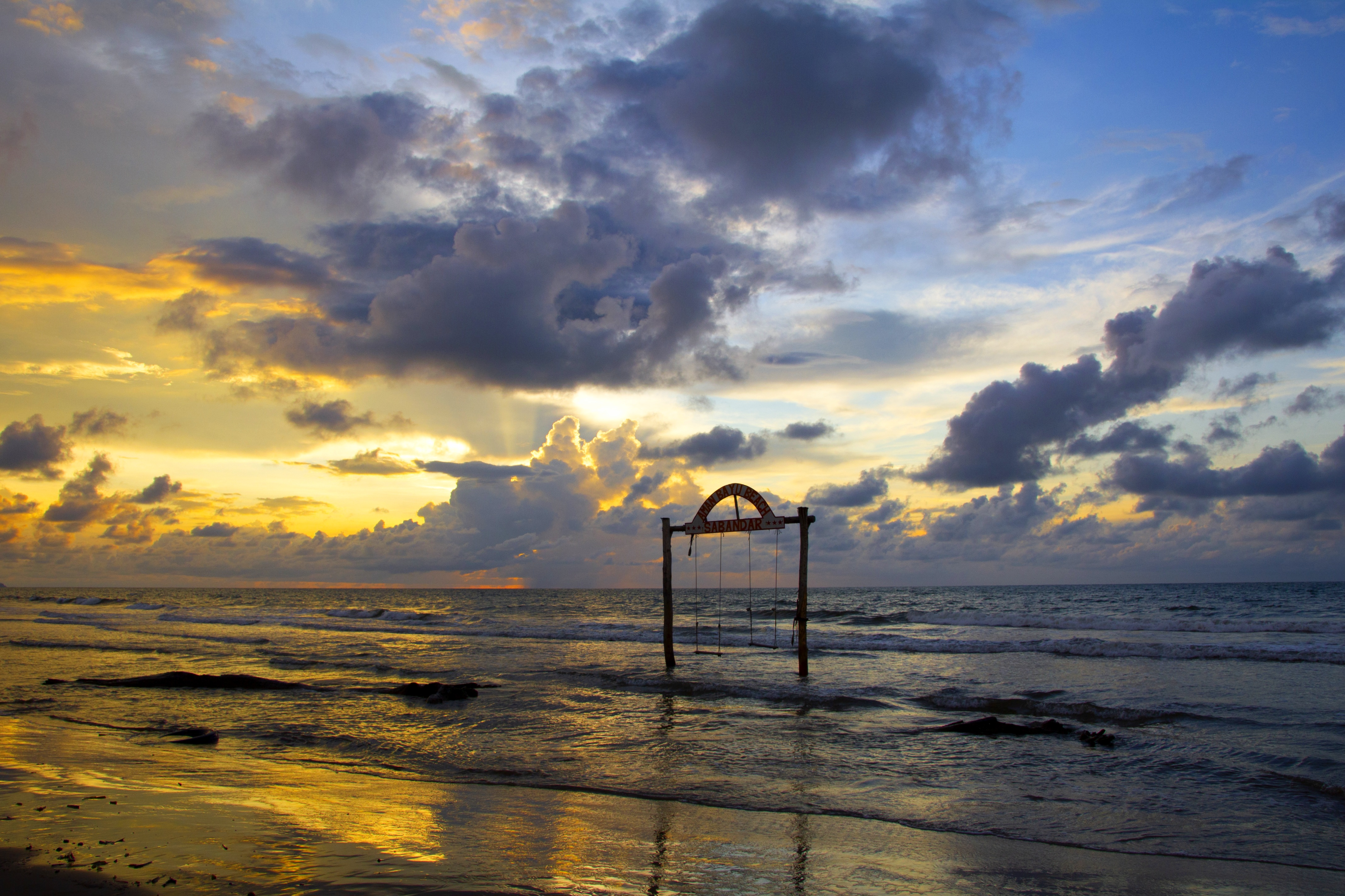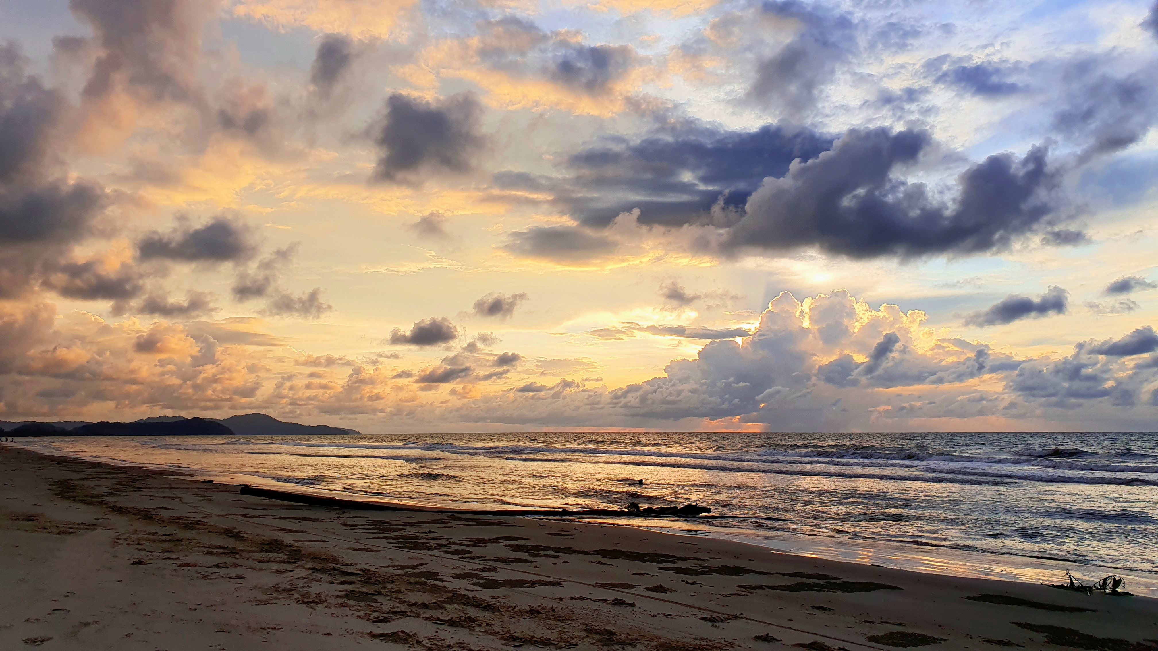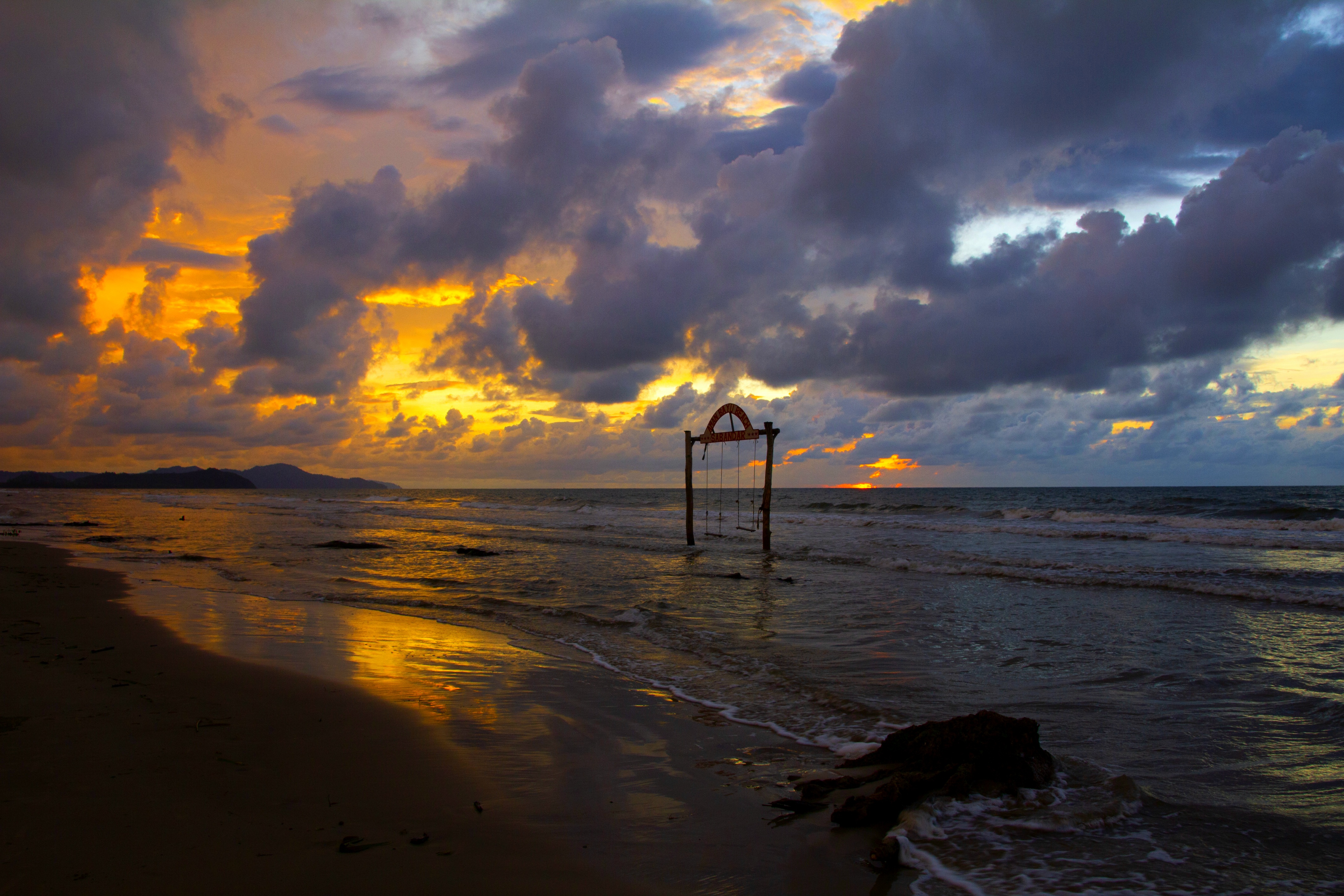 코타키나발루는 세계 3대 석양지라고 불리는데 위에 얘기했듯이 저흰 제대로 된 노을은 보지 못했어요. 사진처럼 애매한 느낌의 석양으로 만족해야 했습니다. 아쉽게도 날씨 운이 안 따라주네요. 그래도 여기 포토존인 Aman Bayu Beach 그네 앞에서 사진을 찍고, 해변도 걷고, 앉아서 바닷바람도 느껴보고, 할 건 다 해서 만족해요.