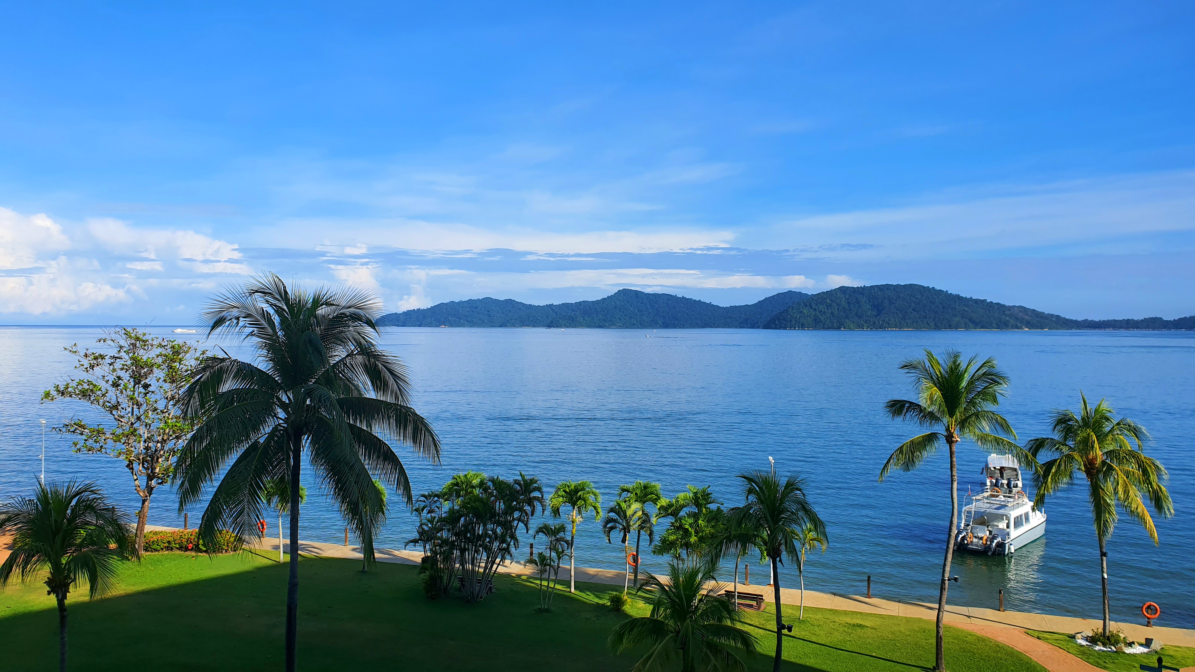 일어나 보니 바다 쪽에는 이미 해가 들어서 멀리 있는 Pulau Gaya 섬이 반짝반짝합니다.
