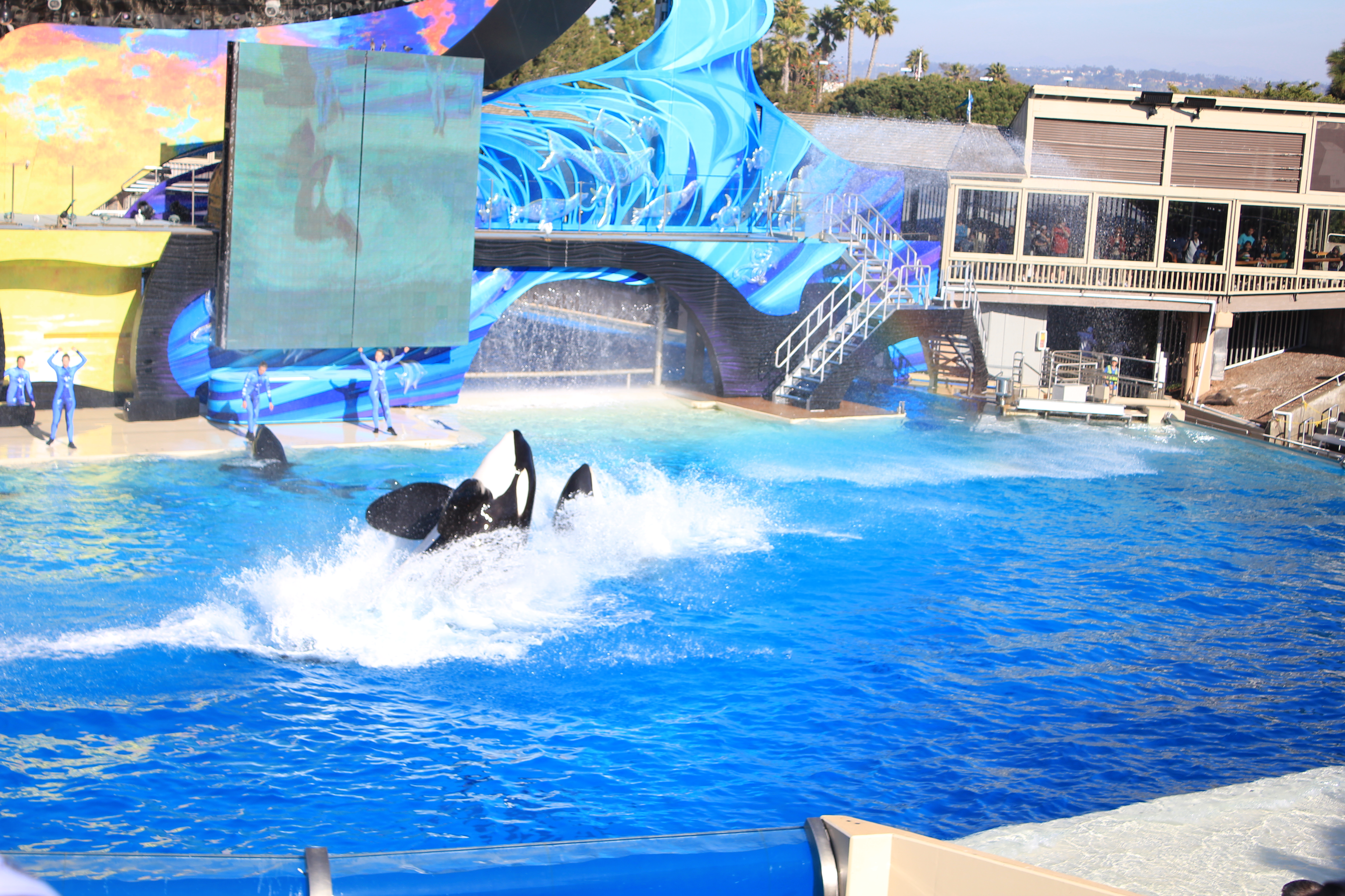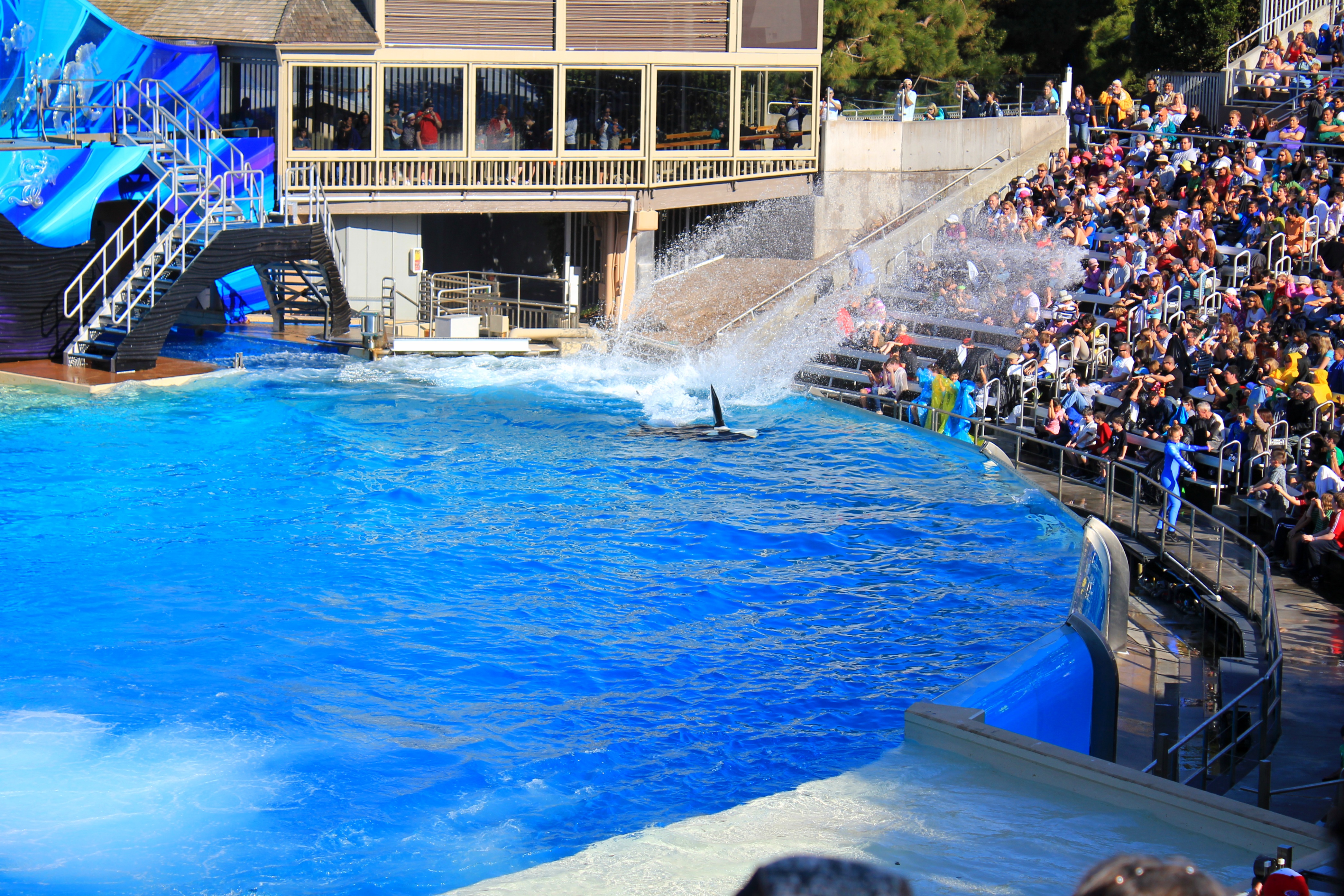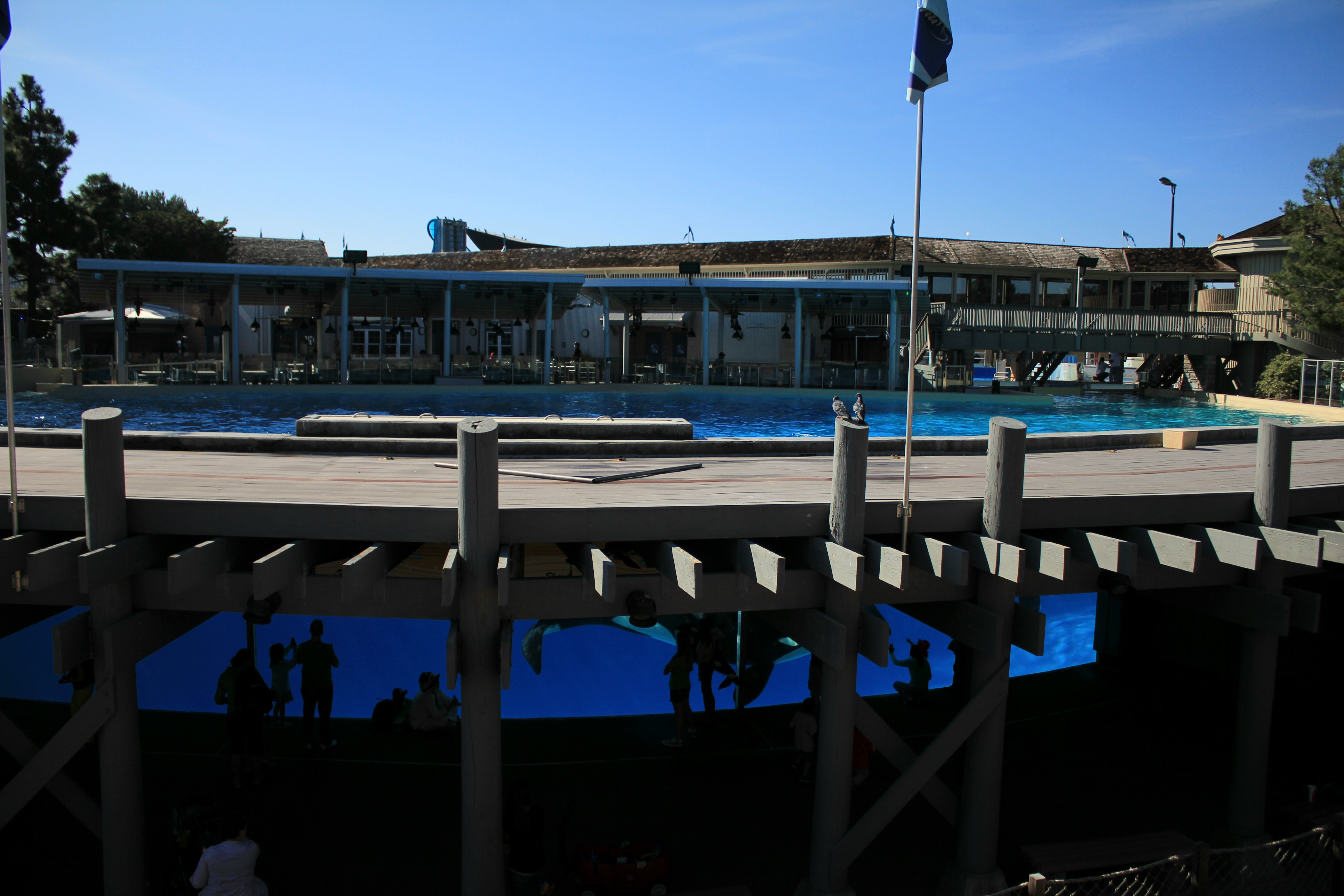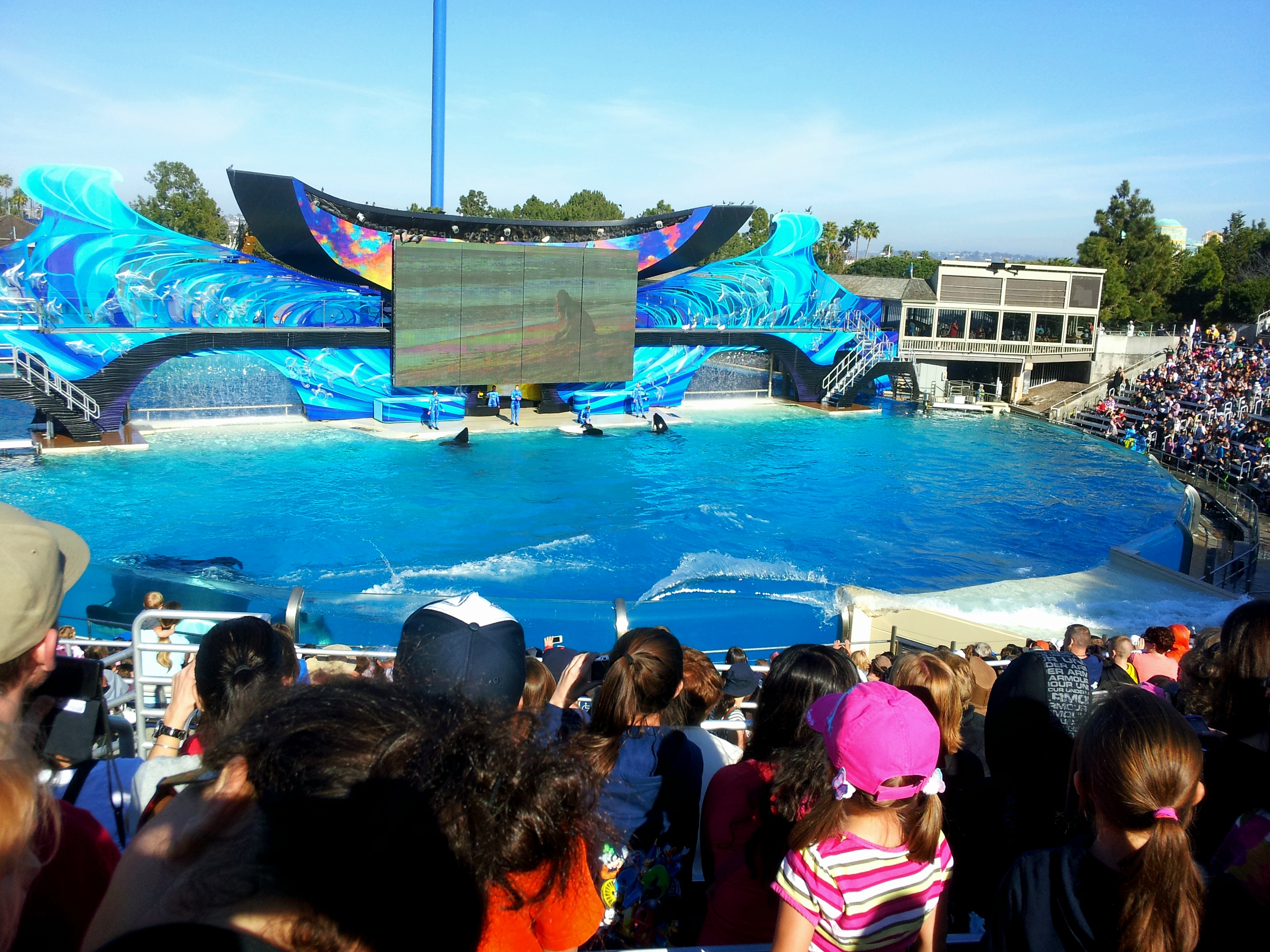 Shamu Stadium에서는 범고래쇼가 펼쳐져요. 여기에 있는 범고래들을 야생으로 돌려보내라는 많은 환경운동가들의 요구가 있으나 이제 야생에서는 생존할 수 없어서 돌려보내지 못한다고 하는데 어디까지가 진실인지는 알 수 없습니다.