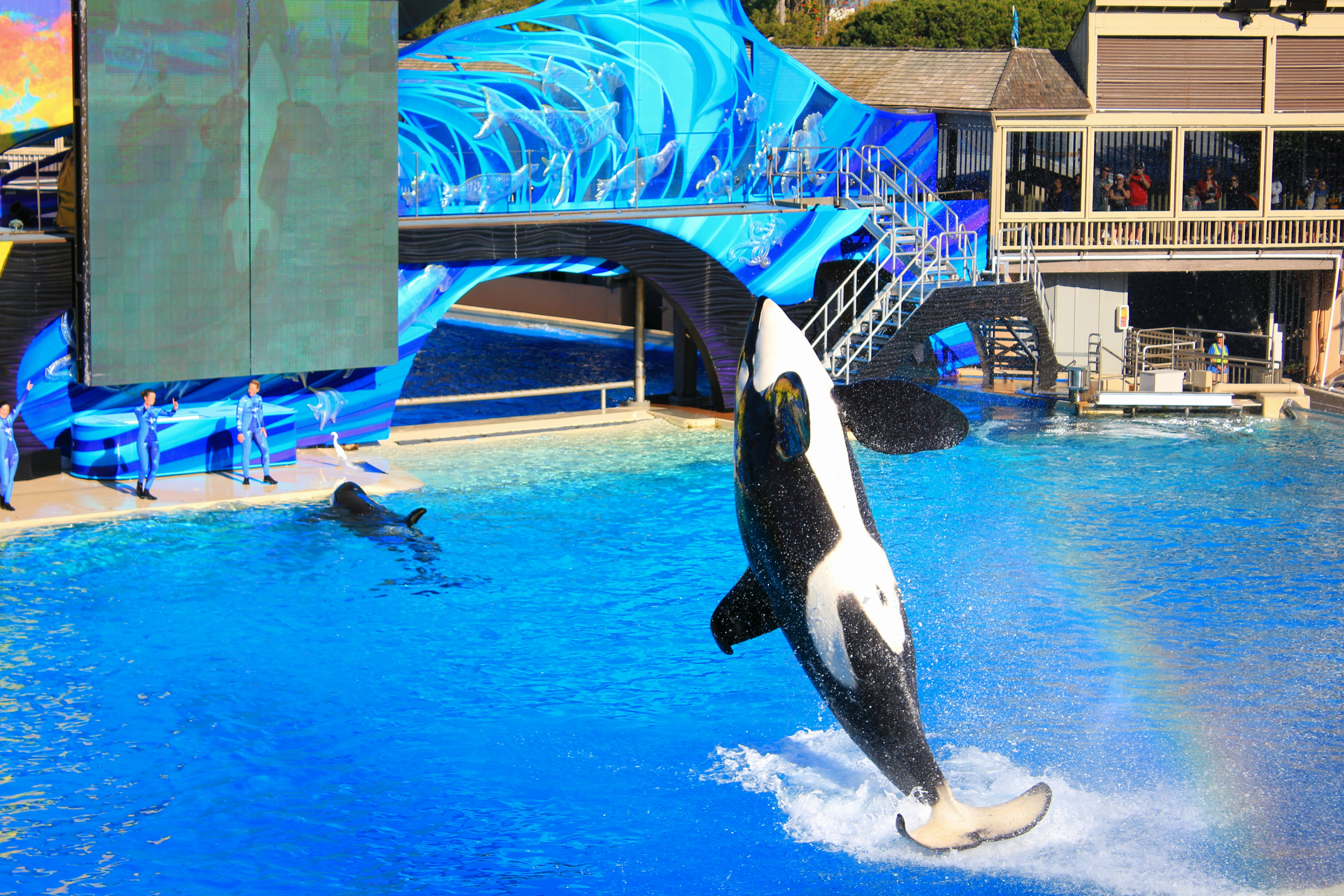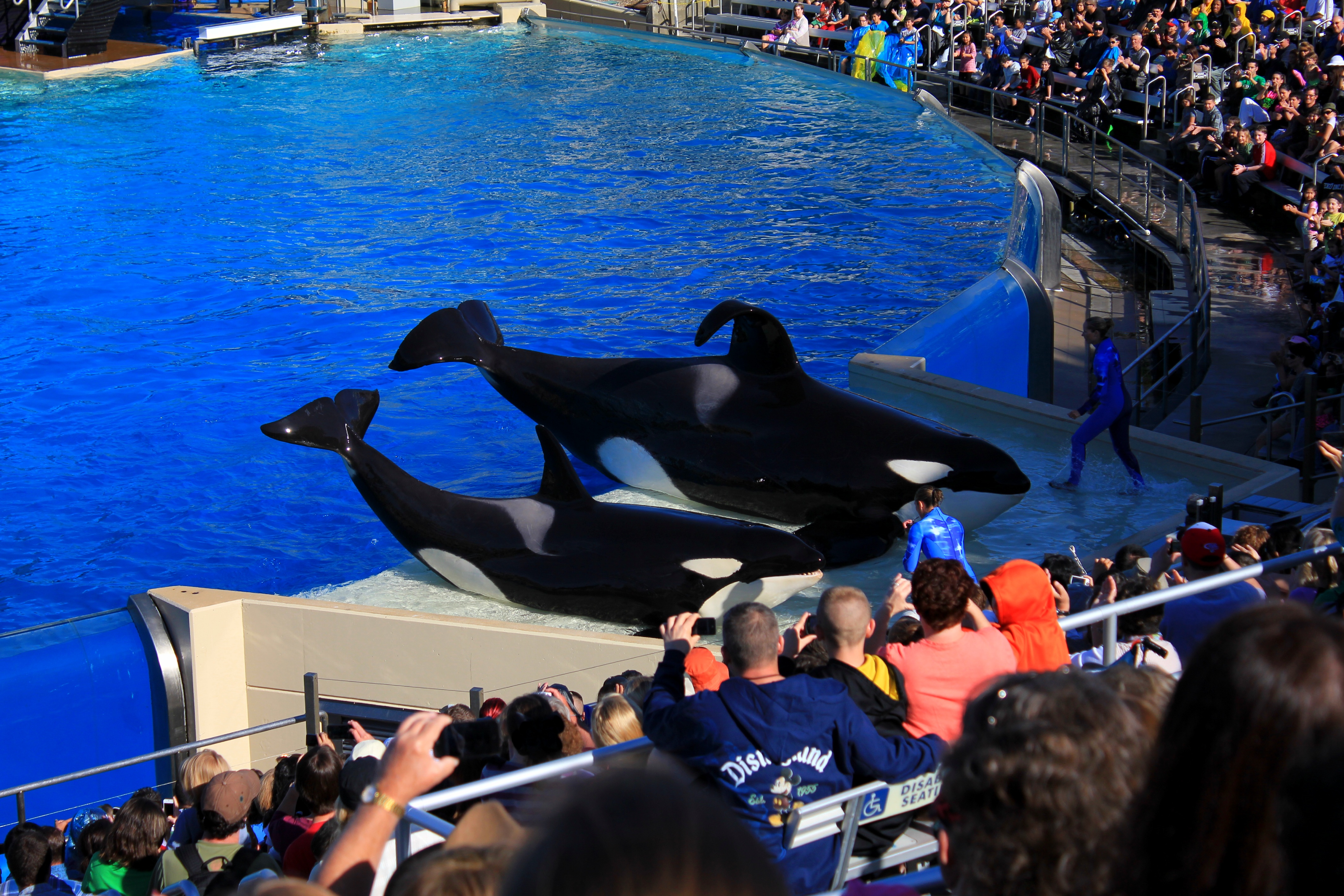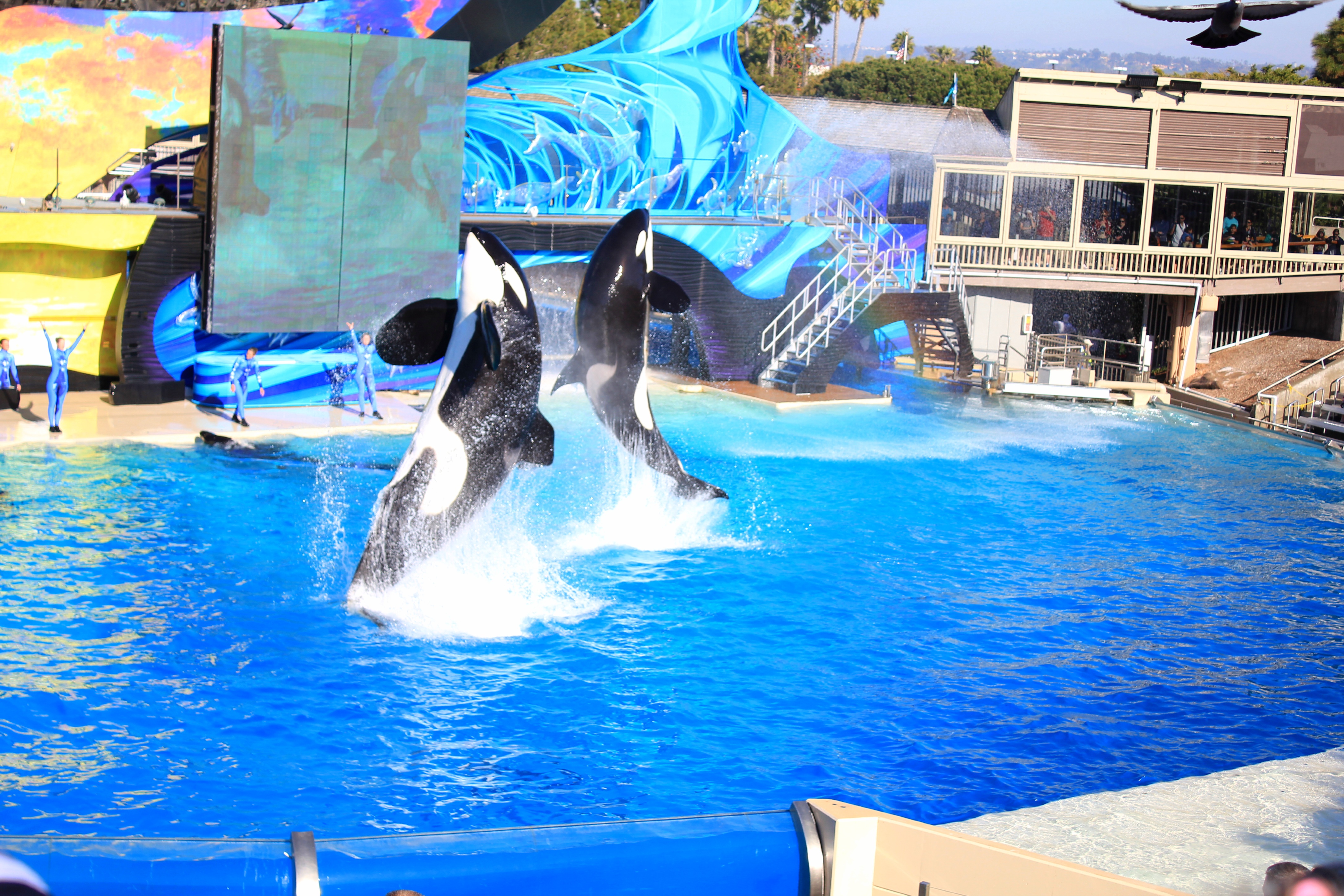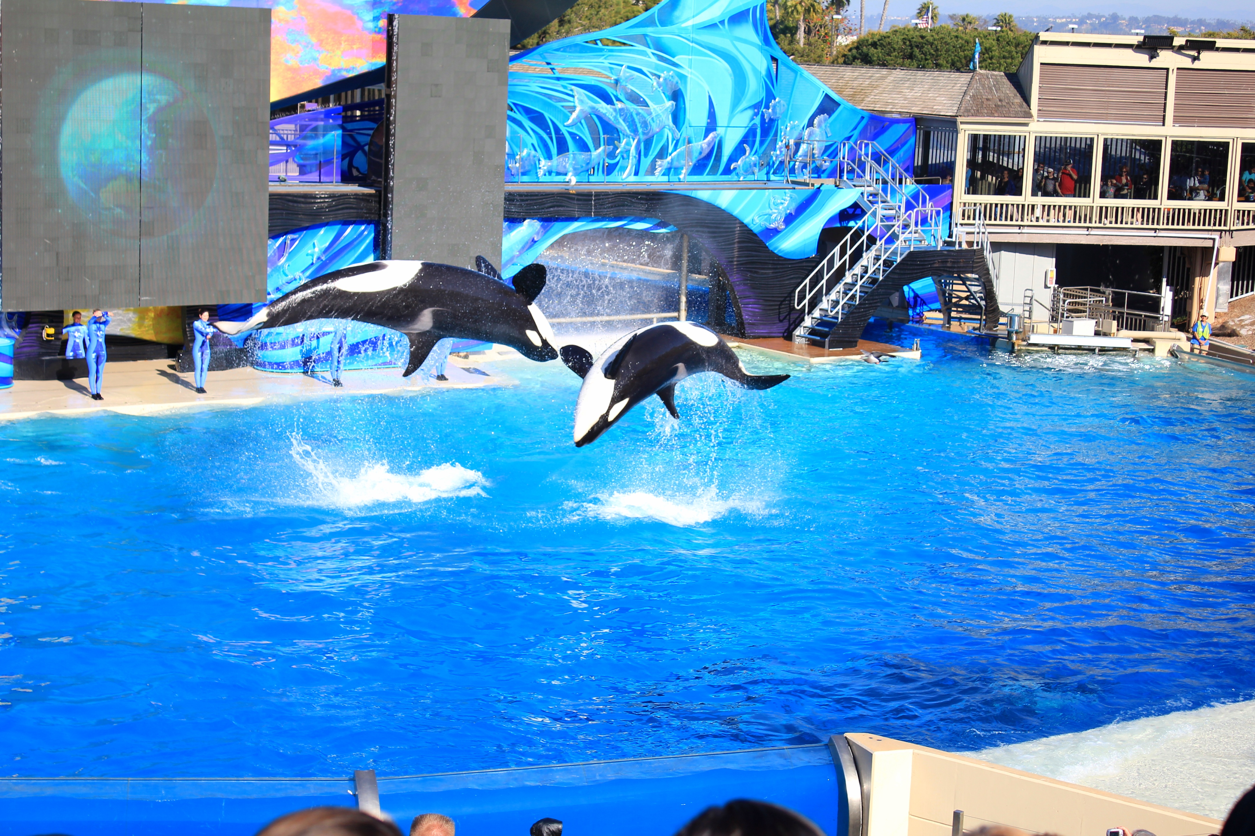 Shamu Stadium에서는 범고래쇼가 펼쳐져요. 여기에 있는 범고래들을 야생으로 돌려보내라는 많은 환경운동가들의 요구가 있으나 이제 야생에서는 생존할 수 없어서 돌려보내지 못한다고 하는데 어디까지가 진실인지는 알 수 없습니다.